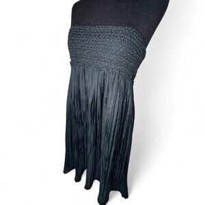 Express 100% Silk Strapless Tube Top Dress w/Lining Beading & Pleated Fabric in Black Size Small