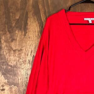 Express 111 Womens Sweater Red V Neck Long Sleeve Relaxed Rayon Blend Small