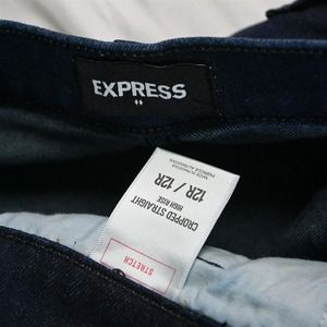 Express 12 High Rise Cropped Straight Dark Wash Stretch Denim Jeans