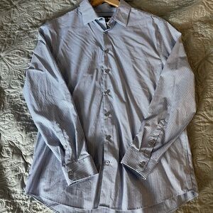 Elevate your wardrobe with this stylish blue striped shirt. Perfect for any occasion, it offers a classic look with a modern twist.