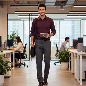 This Express 1MX Modern Dress Shirt in Men's size M is a stylish and versatile option for various occasions such as parties, casual outings, formal events, and business meetings. The shirt features a collared neckline, button closure, and long sleeves, offering a classic yet modern look with a burgundy solid color and a comfortable cotton material. With a regular fit and stretch fabric, this shirt is perfect for all seasons and is a great addition to any man's wardrobe for a polished and put-together appearance.