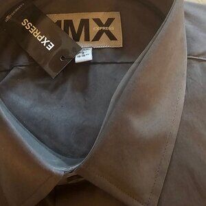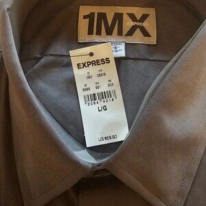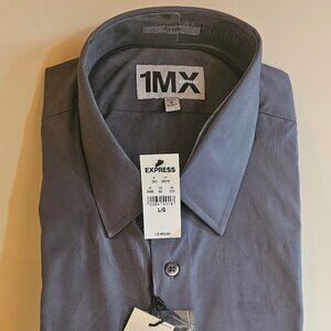 It has a point collar, a full-button front, and long sleeves with button cuffs.