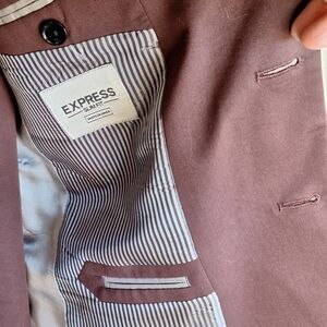 Express 2 Piece Pants Suit Slim Fit Pants Sz33/30 Jacket Sz14? Maroon 2 Buttons