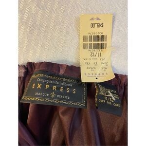 Express 2 piece sheer skirt button top 11/12 new Burgundy Flowers Vintage Old Stock 80?. top has buttons. sheer and will need a tank under it. measures 18" across the chest. 33" long. skirt is lined and measures 15" across the waist. 38" long. 100 polyester. This is old stock, from 80-90? I got it from an estate sale.