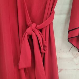 Express 3/4 Red Long Sleeve Wrap Dress Flutter Sleeves