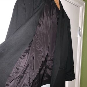 Double button. 2 front pockets. Lined. 3/4 sleeve. Some stretch.