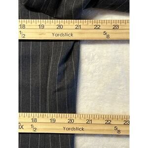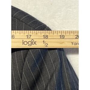 Express blazer sport coat suit jacket in charcoal gray pinstripe. Made of high-quality wool material, this regular fit blazer features a single-breasted cut with a two-button front button style and a notch lapel style. Perfect for various occasions, including travel, weddings, parties, casual outings, and business meetings, this blazer has a double-vented back and a four-button sleeve button style and is suitable for all seasons, including winter, summer, fall, and spring.