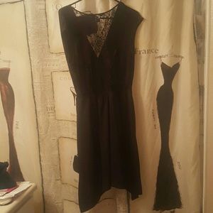 Flirty silk dress (mock wrap style) the back is completely see-through lace. You would either need petals, or be ok with bra strap, or bandeaus being seen. Great black dress for date night, or that special occasion dress. Add some dainty jewelery and some strappy heals!