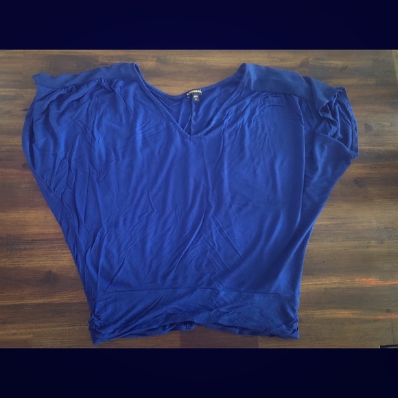 Loose fitting top with fitted band at bottom. Sheer detail on sleeves