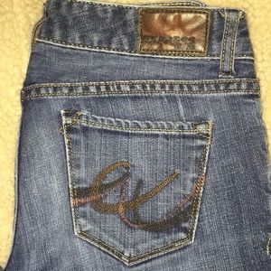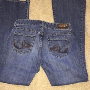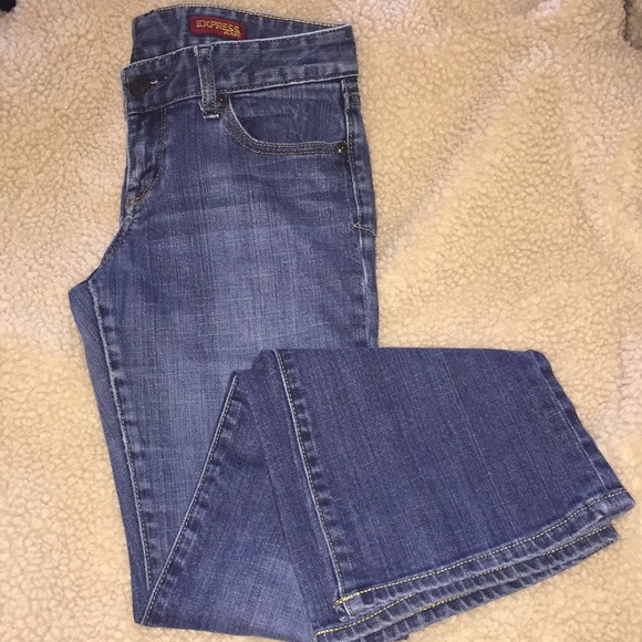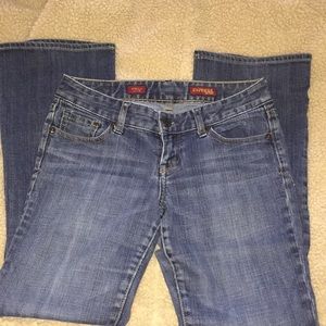 Express “Stella” Boot Leg Jeans. Good condition. Waist: 14 1/2 in. Length: 36in Inseam: 28in.