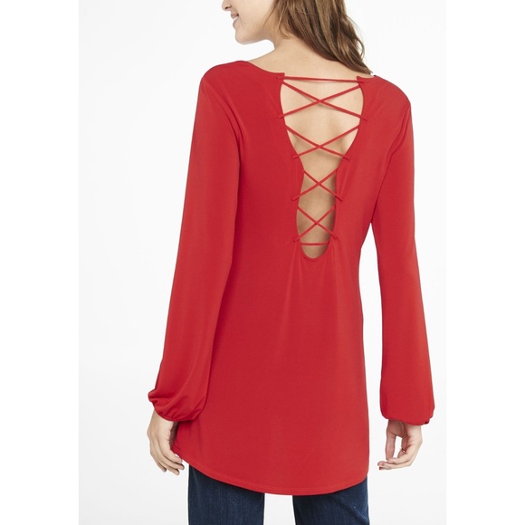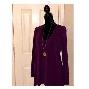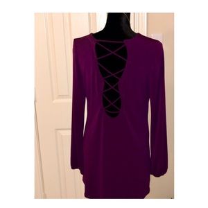 Long sleeve V-neck Lace-up Back Tunic in Purple 96% Polyester & 4% Spandex Worn only once, great condition.
