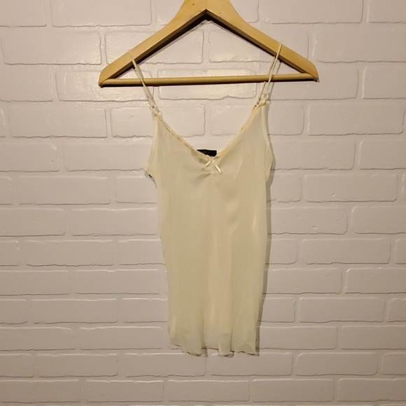 Super cute sheer, tank top. Size small with adjustable straps. No Staines, tips or fringe.