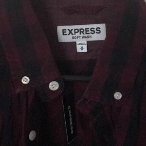 Express button down shirt color checkered Burgundy size M BRAND NEW
