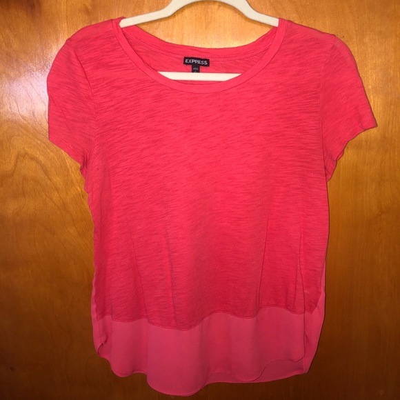 Coral short sleeve tshirt, size Medium. Cotton with silk on the bottom.