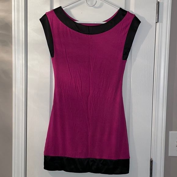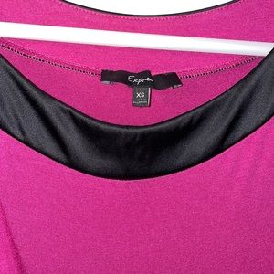Express women’s mini dress in size XS, color is hot pink with black satin trim, material is modal and spandex, condition is worn a few times, no holes or snags.