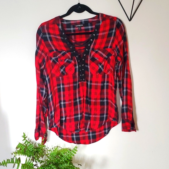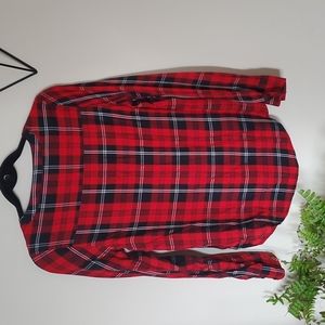buffalo plad pull over, deep shose string V. hardly worn