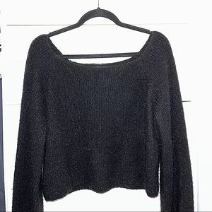 Off the shoulder cropped black sweater top