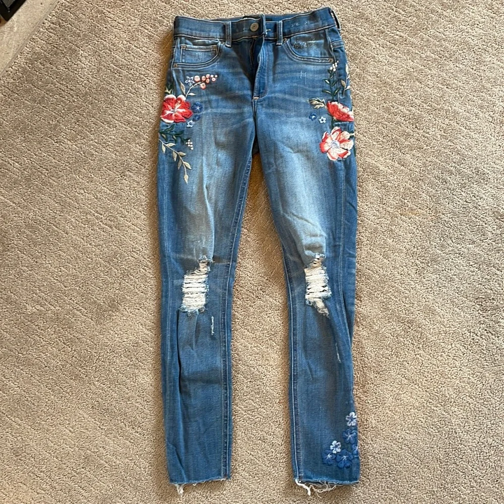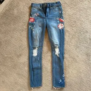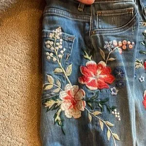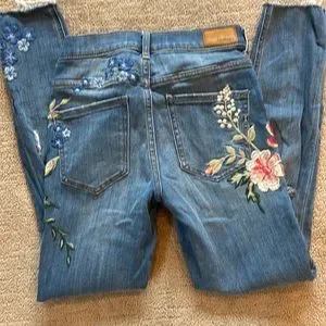 Express ankle jeans. Super cute embroidery from the front to the back. Great for summer and cooler days.