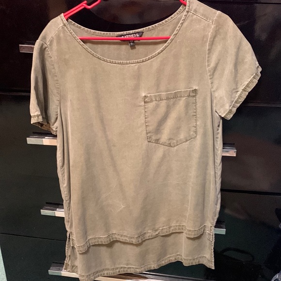 Military green express shirt. Tunic. Distressed.
