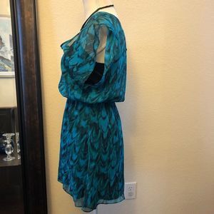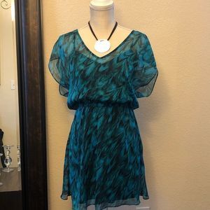 Express Casual Dress Ruffle Accents Frills & Ruffles Mini Silhouette N-neck Animal print Short sleeve 32.5” Chest 33.5” Length