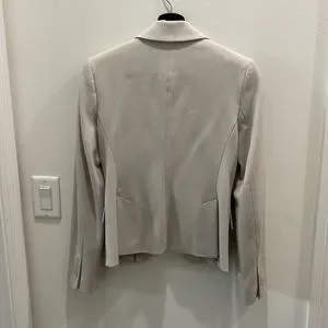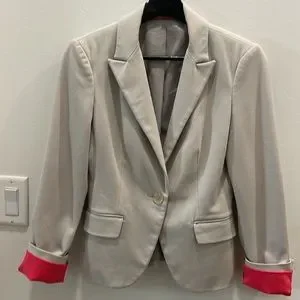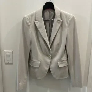 Has a four-button sleeve design and a classic notch lapel style. It is made of a lightweight and stretchy blended fabric that will keep you comfortable all day long. Worn a handful of times.