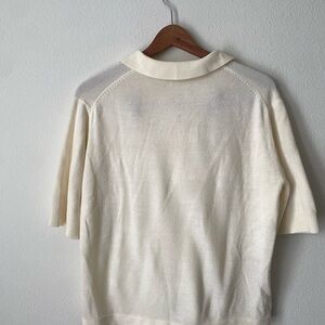 White short sleeve collar button down. Nice soft fabric with accent buttons.