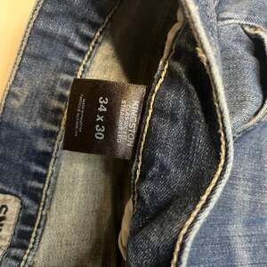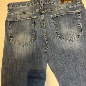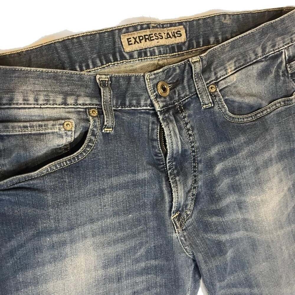 Express Men's Kingston Straight Leg Jeans, size 34x30, in a classic blue wash. These jeans are designed for a comfortable, everyday fit. Ideal for casual wear, easily pairing with a variety of tops. Excellent pre-owned condition with no significant flaws. Made in Pakistan.