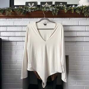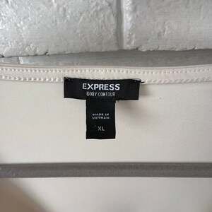 Express Body Contour Long Sleeve Bodysuit, Ivory White, Size XL — A sleek wardrobe essential designed for a smooth, tucked-in look.