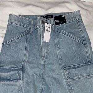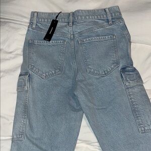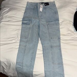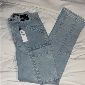 Trendy denim cargo pants with practical pockets. Ideal for everyday style. Size 4R. New with tag, never worn