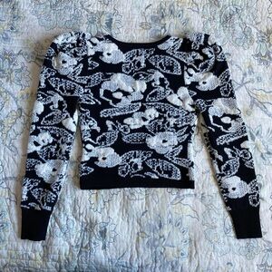 Black & white Express sweater with leg of mutton sleeves