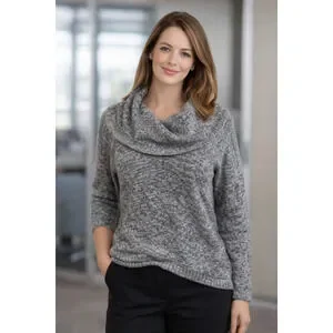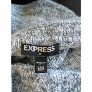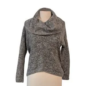 Cozy and stylish Express sweater in a versatile gray marled knit. Features a flattering cowl neckline, long sleeves, and a soft, lightweight feel perfect for layering. Casual yet polished—ideal for everyday wear, work-from-home, or fall and winter styling. Size XS. Excellent pre-owned condition with no noted flaws.