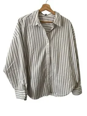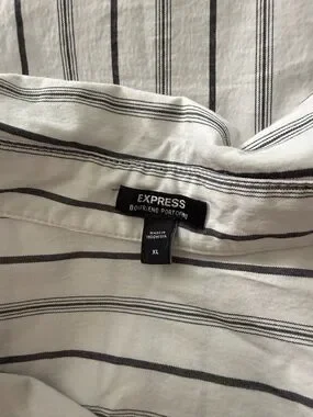 Express Stretch Cotton Poplin Striped Boyfriend Shirt