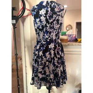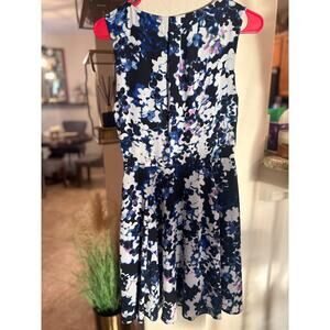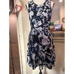 Express 8 Black White Blue Floral Sleeveless Fit and Flare Shift Mini Dress