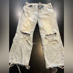Express 90s Ankle Boot Mid Rise Light Wash With Tear Jeans Size 6s