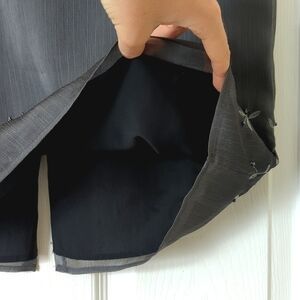 VTG and straight out of the 90s - This super cute skirt features a high waist with a zipper closure at the back, a straight cut with a knee length, and a slit at the center back hem. It is composed of a sheer gray chiffon with a black lining, it has an intricate vine embroidery around the hem with dainty beaded details. It's very soft, lightweight and breathable making it perfect for Spring and Summer. Pairs great with simple tanks, camis or blouses and chunky sandals for a retro look! Classic, timeless and very versatile! High quality!