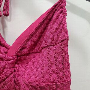 Express 90s Y2K Women's Fuchsia Crochet Knit Twist Knot Halter Dress Size 1/2