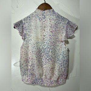 Express Abstract Petal Print Mock Neck Flutter Sleeve Top SZ XS