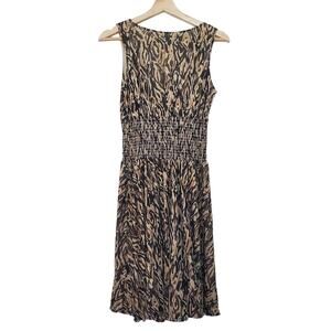 Express | Abstract Print Sleeveless Dress with Shirred Elastic Waist
