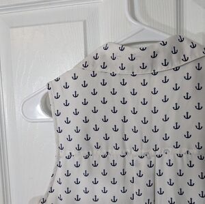 Express Anchor Print Button-Up Sleeveless White & Blue Nautical Dress Size S