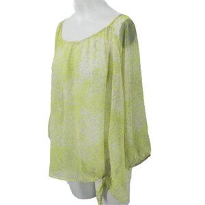 Express Animal Print Sheer Popover Blouse Size L 3/4 Sleeve Tie Waist Yellow Top