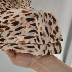 Express Animal Print Top Size Large Button Up V Neck Long Sleeve Cream And Brown