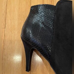 Black booties with 3.5 inch heels.