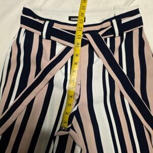 Express Ankle High Rise Striped Paperbag Pockets Sash Tie Pants, Size 6 Regular