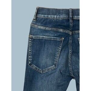 The Express Ankle Legging High Rise Hyper Stretch Denim Two Tone Jeans are a stylish and versatile addition to any woman's wardrobe. These jeans feature a solid blue color with a strip of color down both legs, adding a unique accent to the design. Made from a blend of polyester, spandex, elastell-p, and cotton, these jeans offer a comfortable fit with a high rise waist and slim fit. Perfect for all seasons, these machine washable jeans are a fashionable choice for any occasion. Retail $88.00. Brand new.