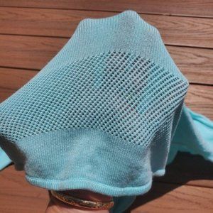 Express Aqua Blue Sweater Dolman Sleeve V Neck Open Knit Stripe Preppy Casual XS
