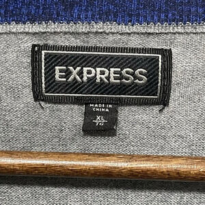 Express Mens Argyle Pullover Sweater Size XL Gray Long Sleeve V-Neck Preppy