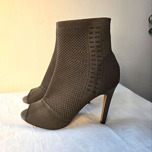 Express Army Green Heeled Boots with Ribbed Texture Open Toe