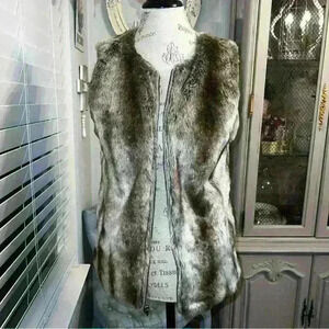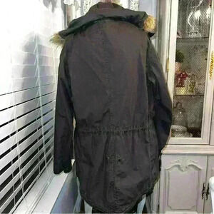 Express Army green utility jacket with detachable hood and inner faux fur vest. Full front zipper on jacket and inside fur vest. Vest can be worn by itself. Pre-owned in new condition.