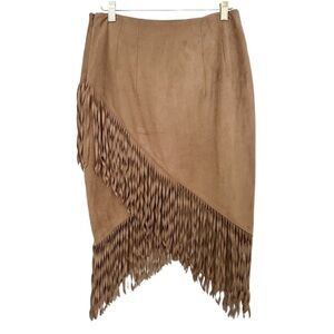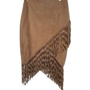 Express Asymmetric Tulip Fringe Faux Suede Camel Tan Skirt Size 4