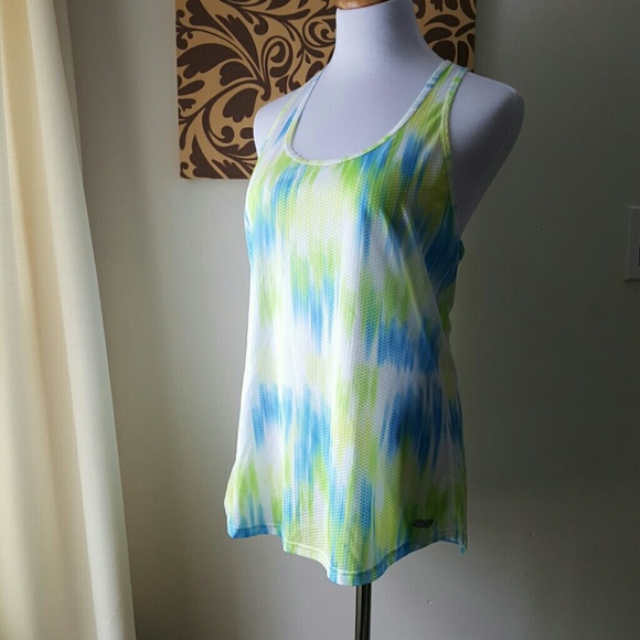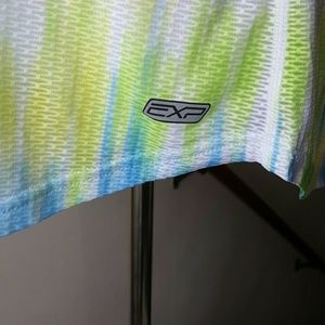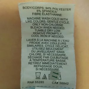 Color consists of white, light blue, green and yellow. The material is light and a lightly see through. No rips or stains. Worn once.